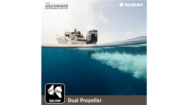 Beim Doppelpropellersystem von Suzuki werden zwei gegenläufige Propeller durch einen Motor angetrieben.